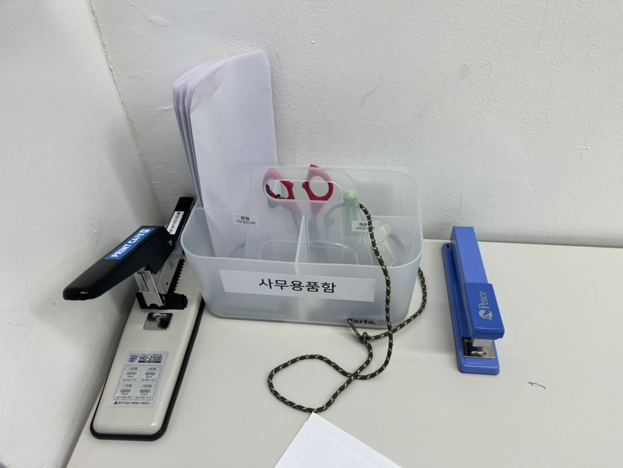 스테이플러, 가위, 볼펜, 자 등등 구비되어있어요