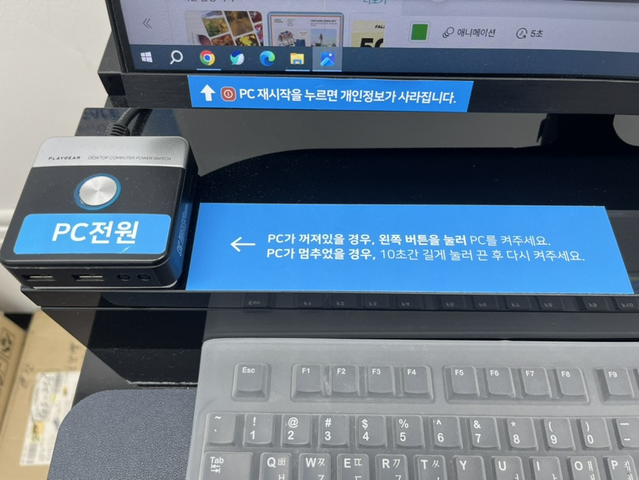 컴퓨터 앞에는 전원 버튼이 있는데 껐다 키면 자동으로 초기화가 됩니다