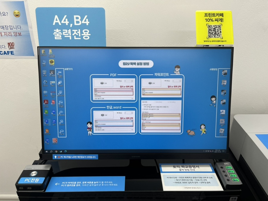 무인으로 간편하게 언제나 사용 가능한 무인프린트카페 정말 좋네요