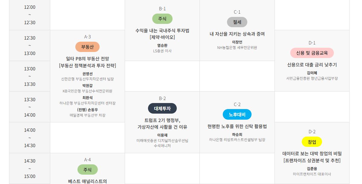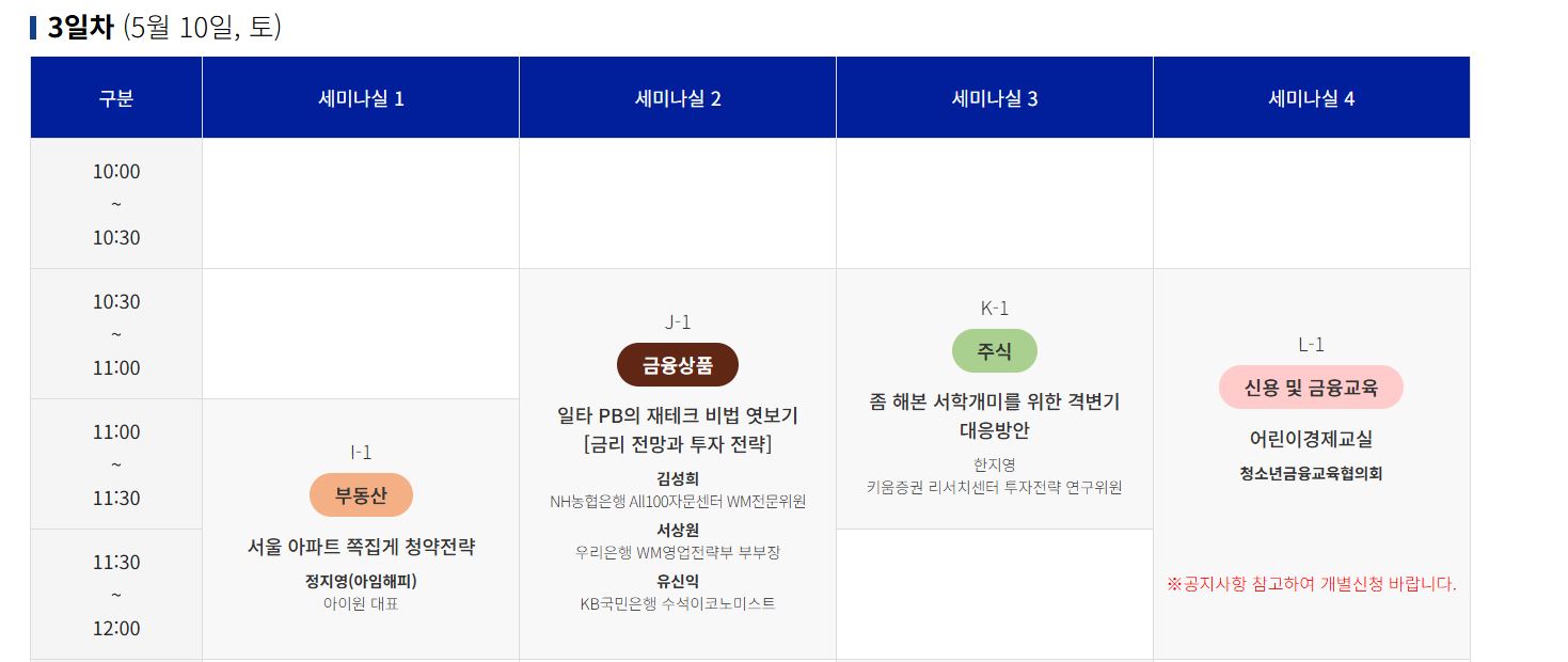 주식, 부동산, 은퇴설계, 자산관리 등 ‘돈’에 대한 모든 정보를 얻을 수 있는 기회랍니다!